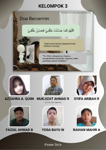 KELOMPOK 3 AZZAHRA A. QUIIN MUKJIZAT AHMAD R SYIFA ARIBAH R KETUA KELOMPOK FAIZAL AHMAD B YOGA BAYU W RAIHAN MAHIR A -Poster Do’a-