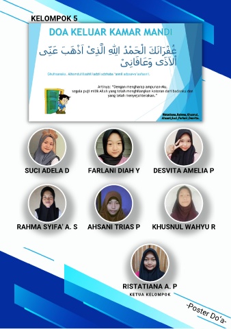 KELOMPOK 5 SUCI ADELA D FARLANI DIAH Y DESVITA AMELIA P RAHMA SYIFA' A. S AHSANI TRIAS P KHUSNUL WAHYU R RISTATIANA A. P KETUA KELOMPOK -Poster Do’a-