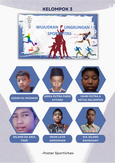 KELOMPOK 3 ABIRA PUTRA FARID FAHRI PUTRA A AZZAM AL MUZAKKI AYYASH KETUA KELOMPOK GILANG DA ARUL IWAN LATIF KIA JELANG FIKRI ARROHMAN RAMDHANY -Poster Sportivitas-