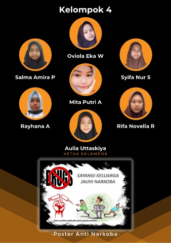 Kelompok 4 Oviola Eka W Salma Amira P Syifa Nur S Mita Putri A Rayhana A Rifa Novelia R Aulia Uttaskiya K E T U A K E L O M P O K -Poster Anti Narkoba-